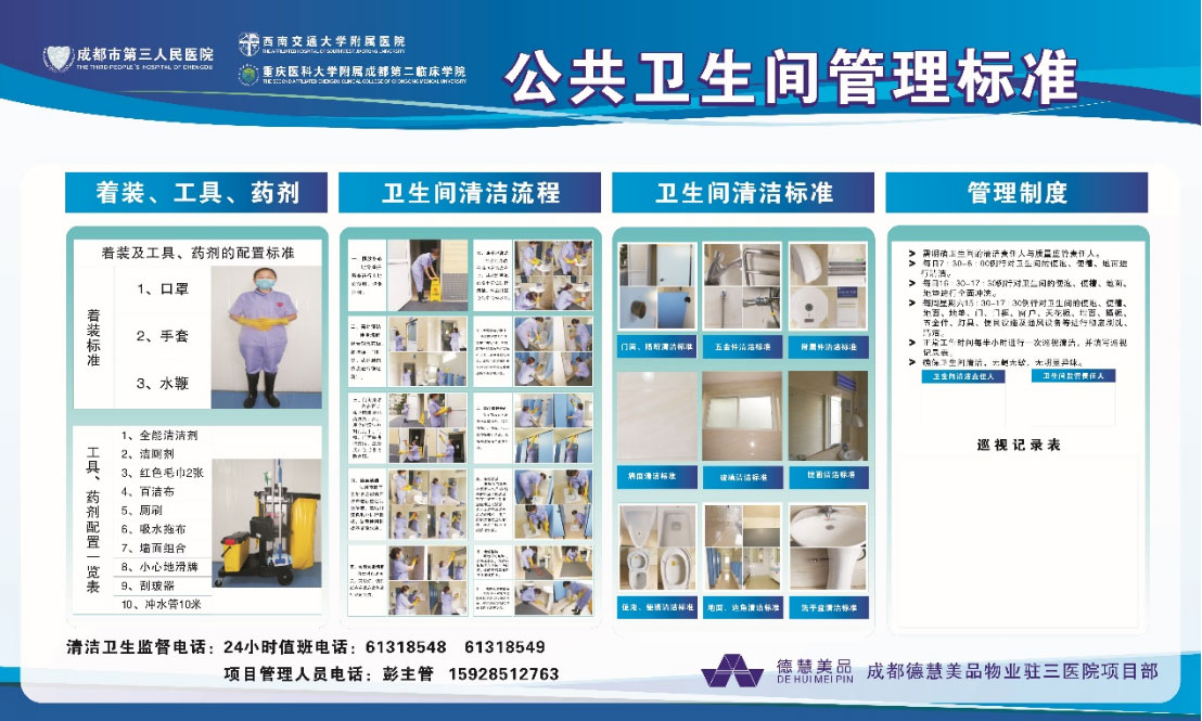 我公司和西安市質(zhì)量技術(shù)監(jiān)督局共同起草西安市《公共廁所管理與服務(wù)規(guī)范》,全國醫(yī)院企業(yè)唯一僅有的標準體系。1、德慧美品的信息化系統(tǒng)是完